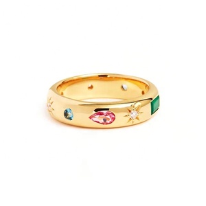 Anillo Domo Milskye de Alta Joyería de Moda en Plata 925 y Oro de 18k con Gemas Mixtas Coloridas de Circonita Cúbica en Tallas Baguette, Redonda, Estrella y Lágrima