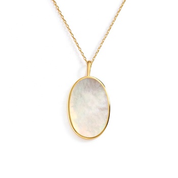 Milskye Elegant Delicate Jewelry 18k Gold Plated Silver 925 Mother of Pearl Oval Pendant Necklace