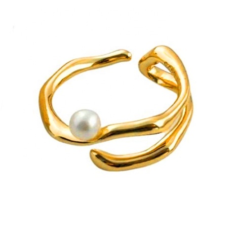 Milskye elegante jóias 925 sterling silver 18k ouro minimalista linha geométrica moda ajustável anel de pérola para as mulheres