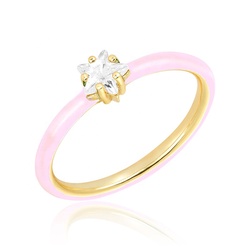 Milskye das mulheres Da Forma 925 de prata rosa esmalte jóias 14k banhado a ouro Estrela Anel de Zircão