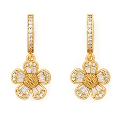 เครื่องประดับละเอียดอ่อน Milskye 925 เงินสเตอร์ลิง 18K ทองชุบลูกบาศก์เซอร์โคเนียปูดอกไม้รูปร่างต่างหู Huggies สําหรับผู้หญิง